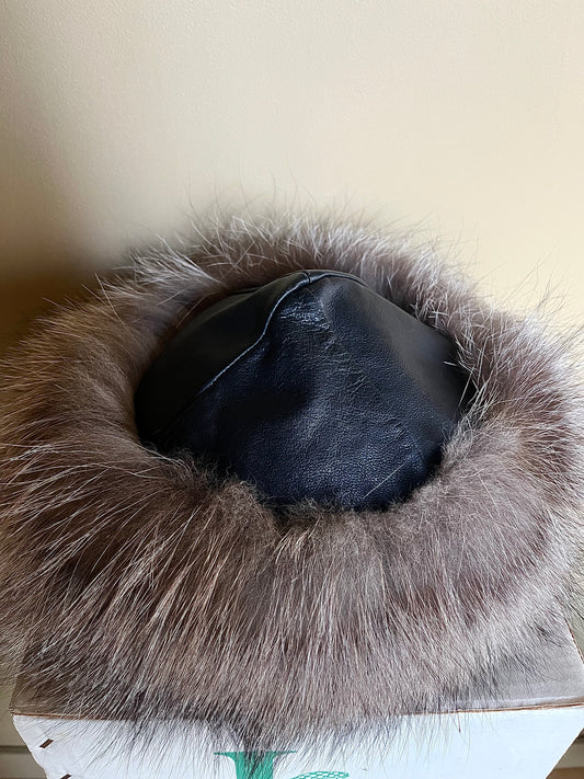 Vintage pälsmössa med skinn