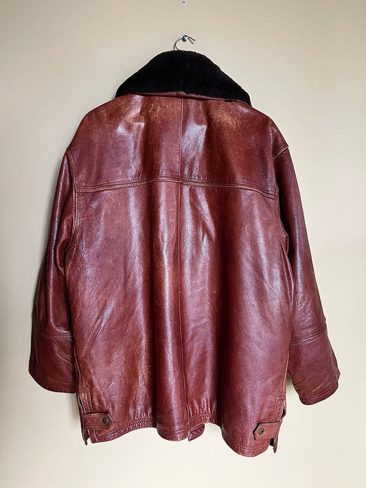 SlutsåldBrun skinnjacka med fårskinnskrage
