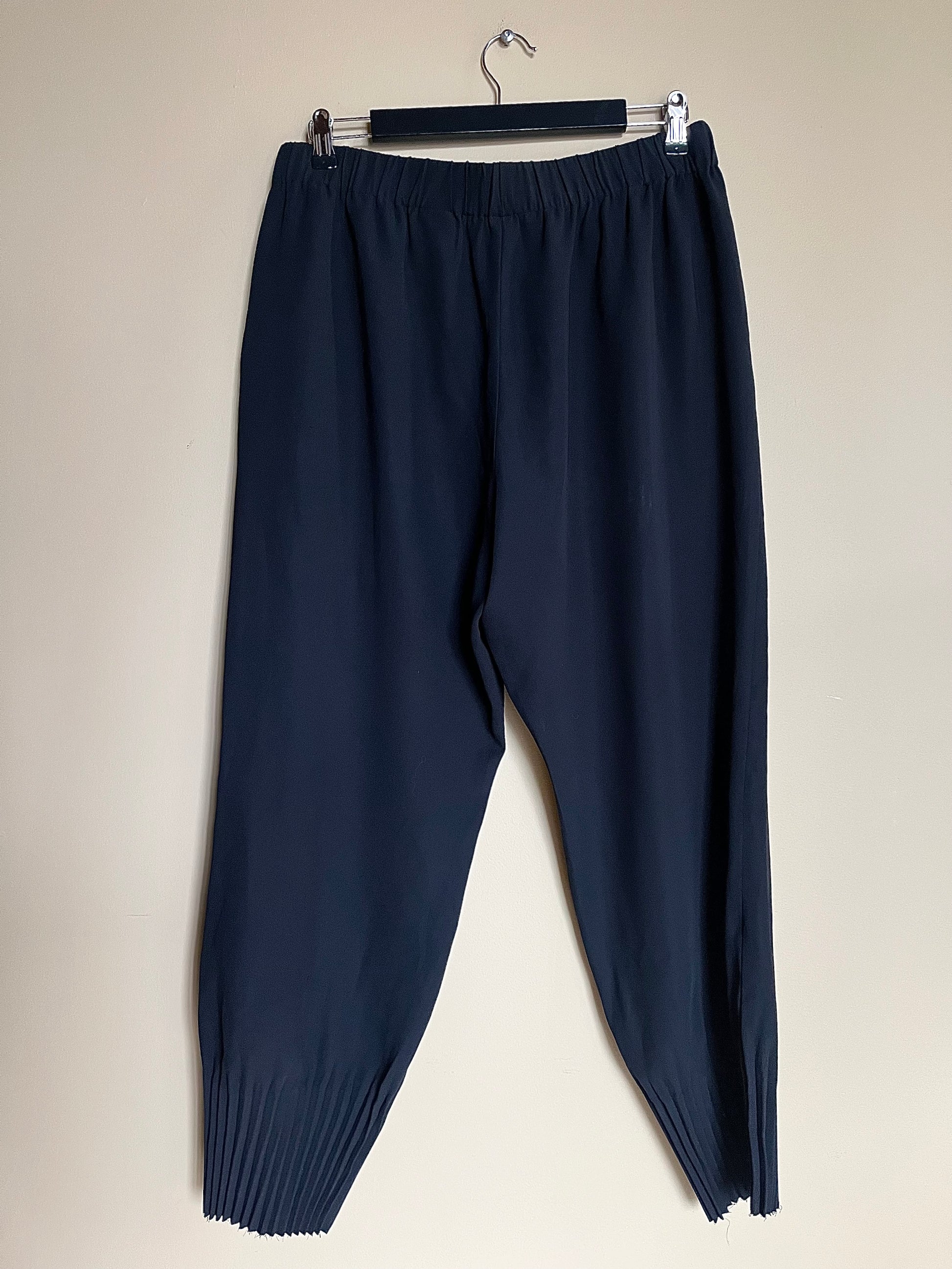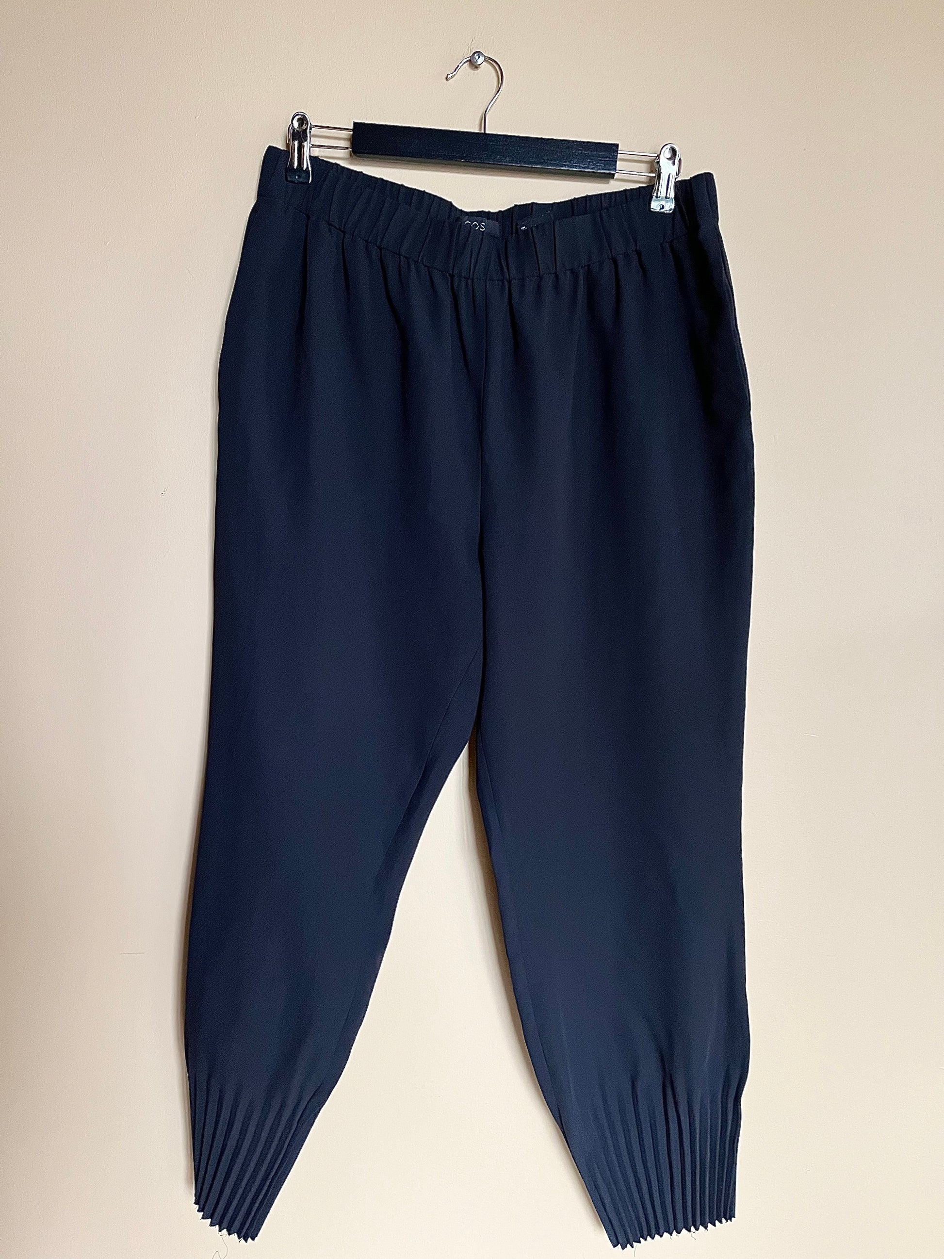 Snygga dressade byxor med mycket dekorativa plisserade muddar nedtill.