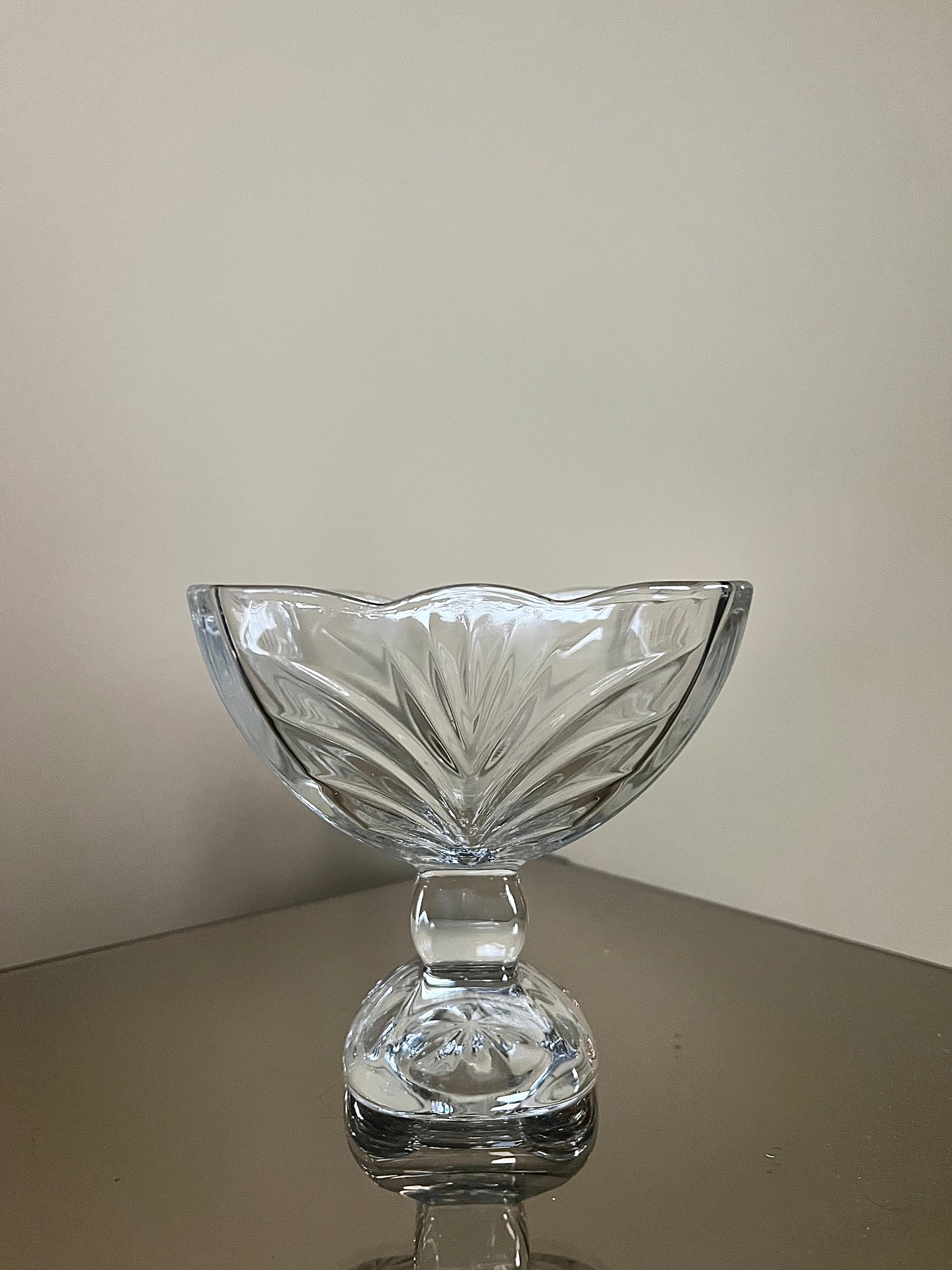 Mycket fina dessertskålar/coupeglas i glas. Vackra detaljer i glaset och perfekt storlek att servera efterrätt eller annat gott småplock i.