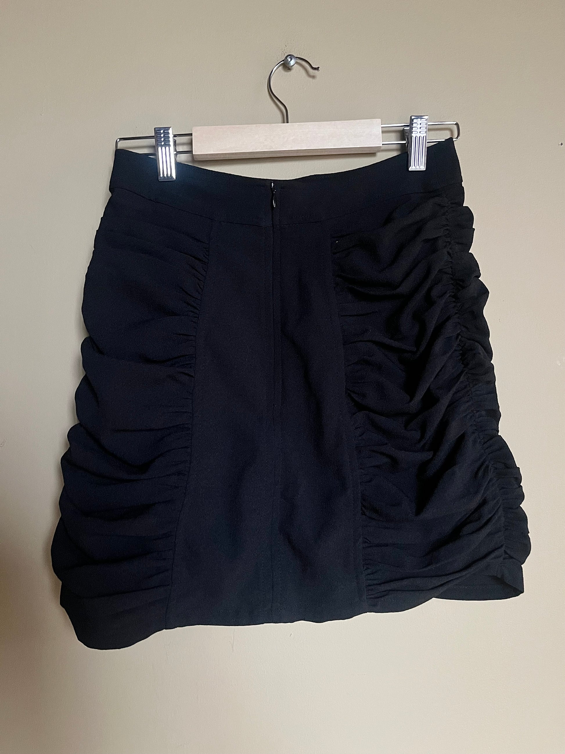 Svart kort kjol i vacker design med ryschdetaljer på sidorna. Stängs med dragkedja baktill.