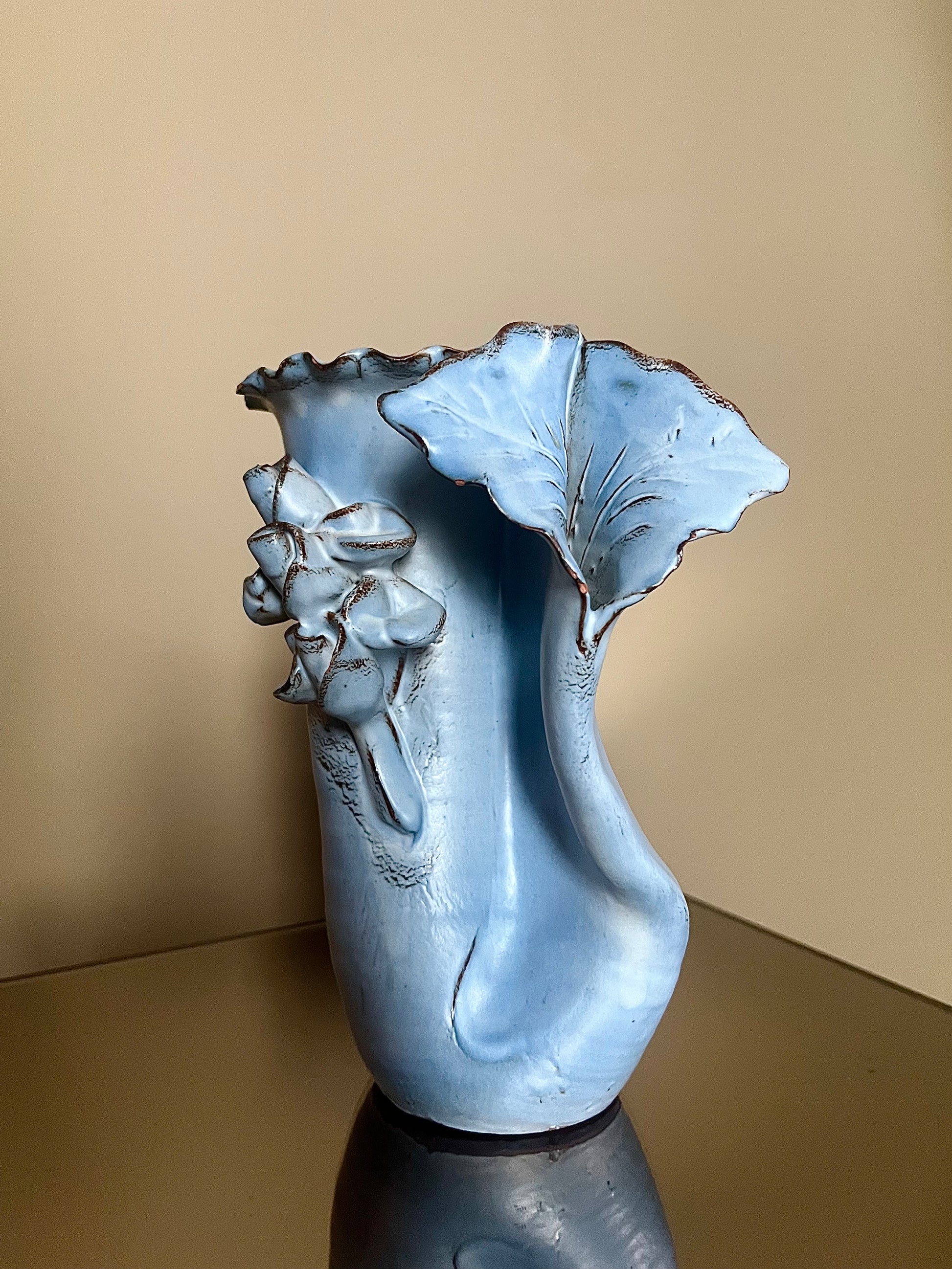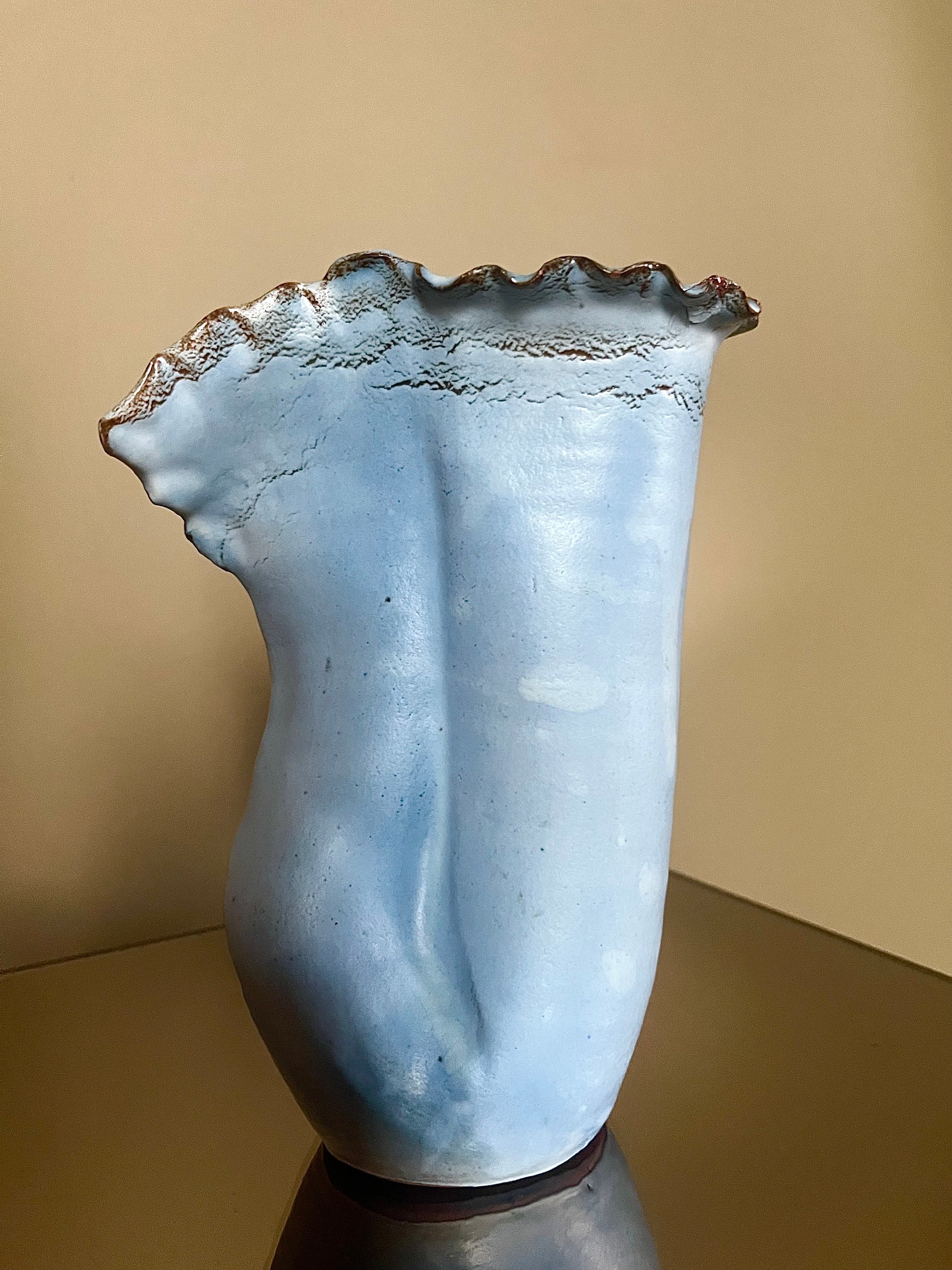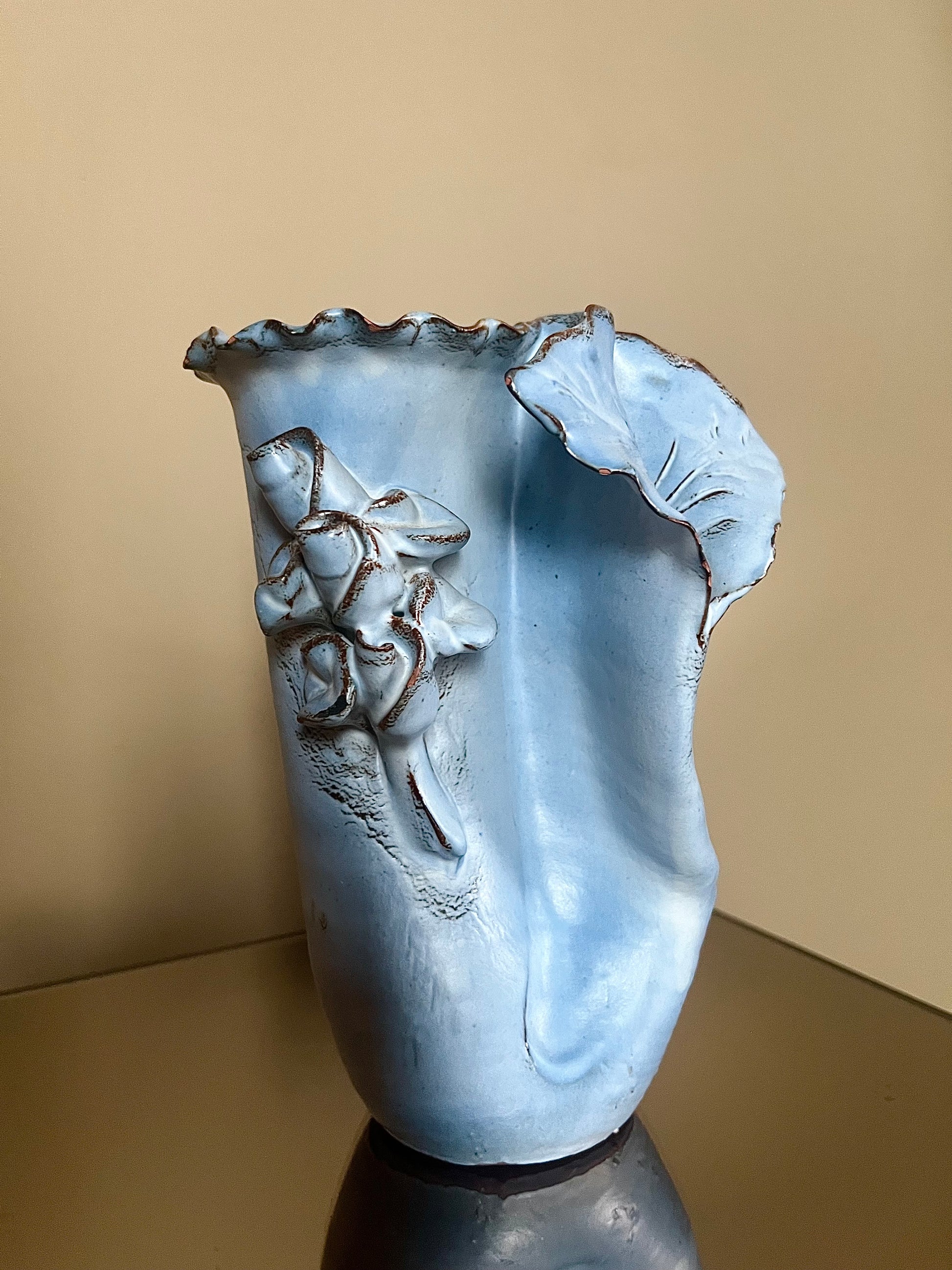 Ljuvlig liten vas i keramik, målad i en fantastiskt fin himmelsblå färg. Handgjord i Grekland.