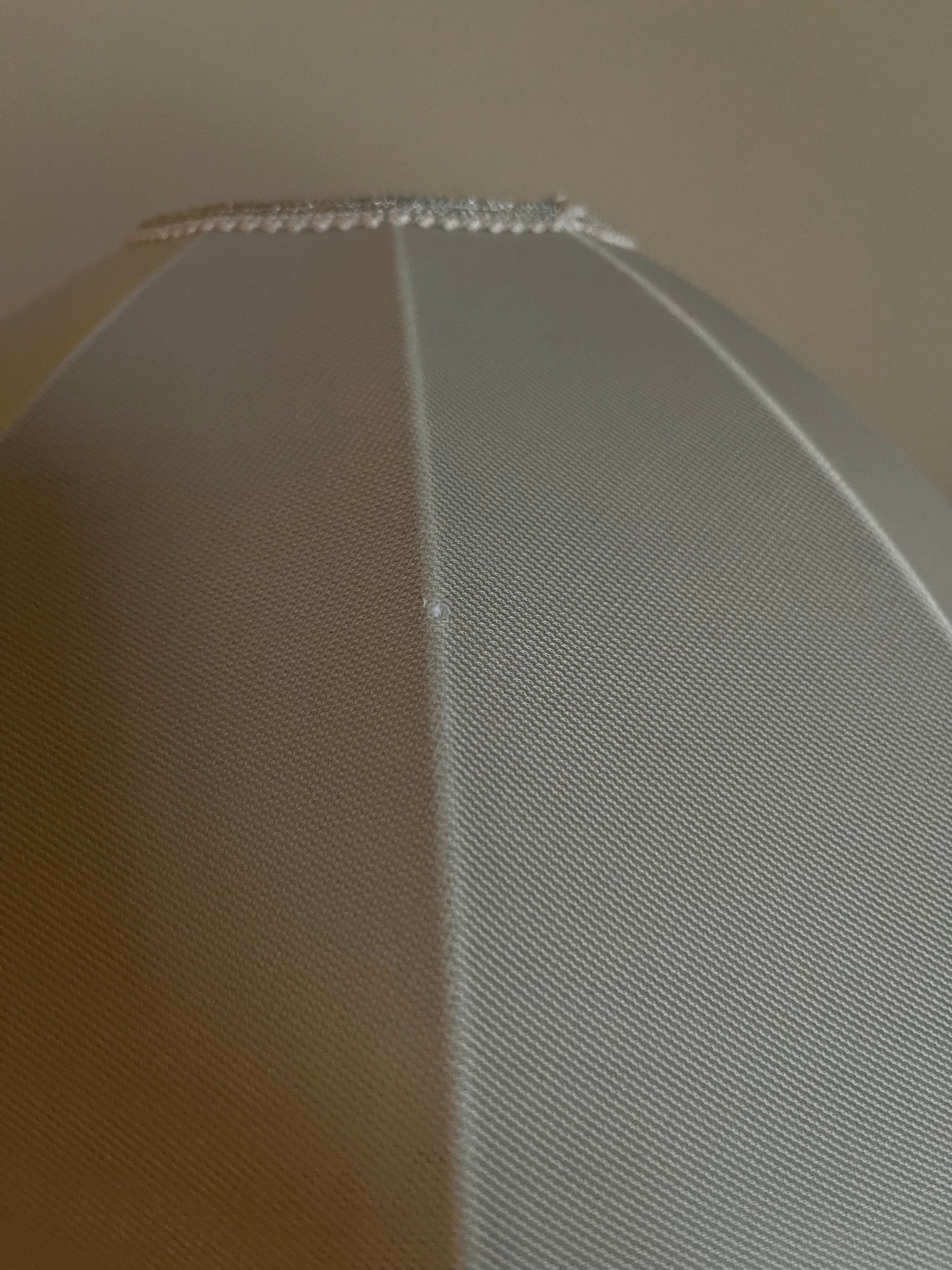 Skick: Mycket bra vintageskick. Skärmen är nästintill i nyskick, med undantag för ett par mycket små skador i tyget som knappt syns. Glasfoten helt utan skador eller nagg, mindre patina på metallen och spår av användning i glaset.