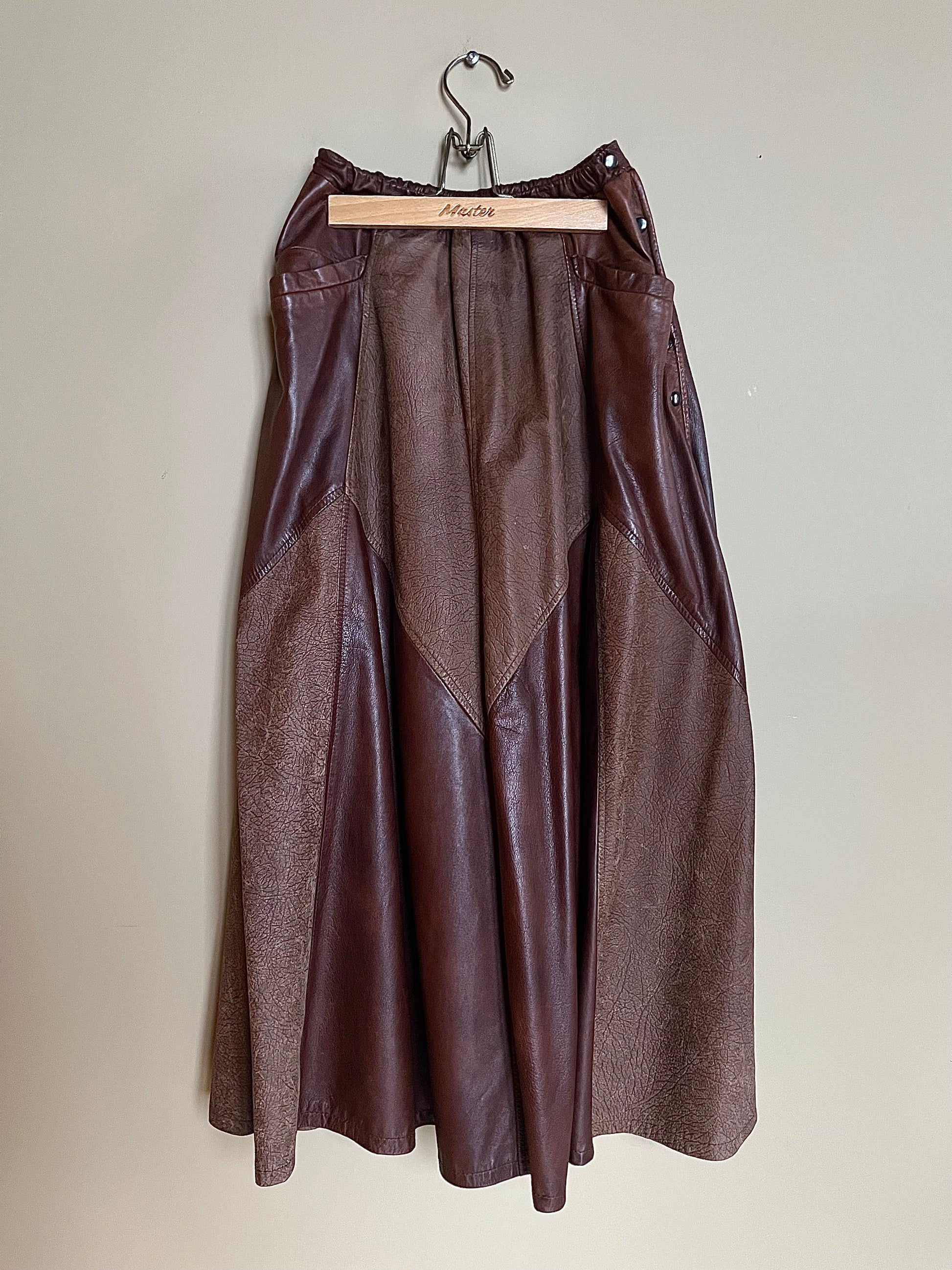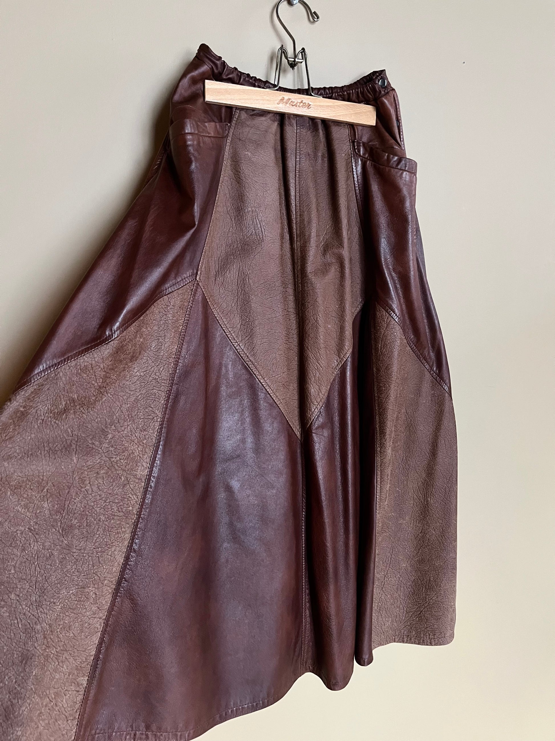Skick: Mycket bra vintageskick. Lite patina i skinnet som tillför charm och gör kjolen ännu coolare.