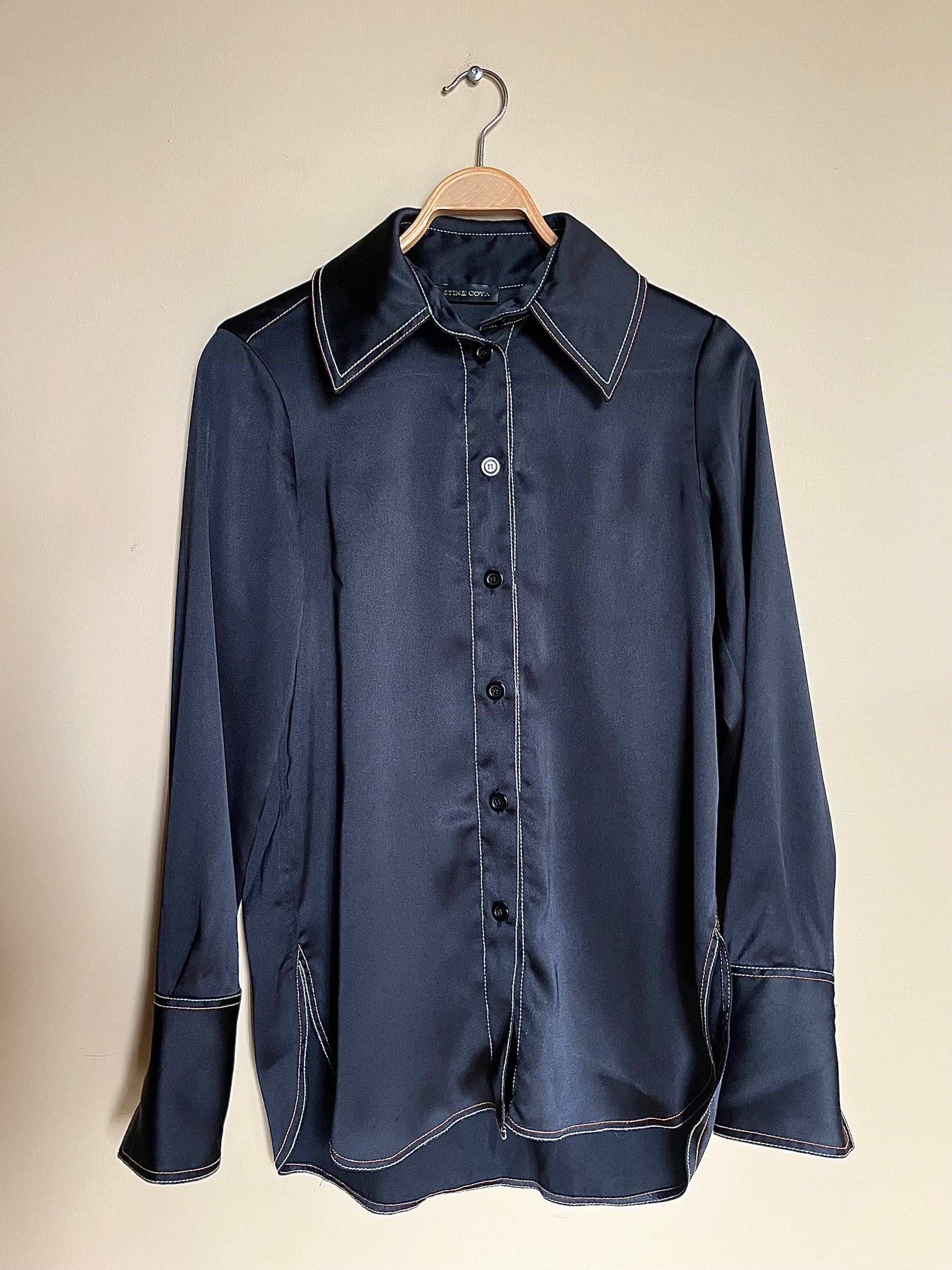 Flådig blus från danska Stine Goya. Härlig tyngd i tyget som ger ett vackert fall.